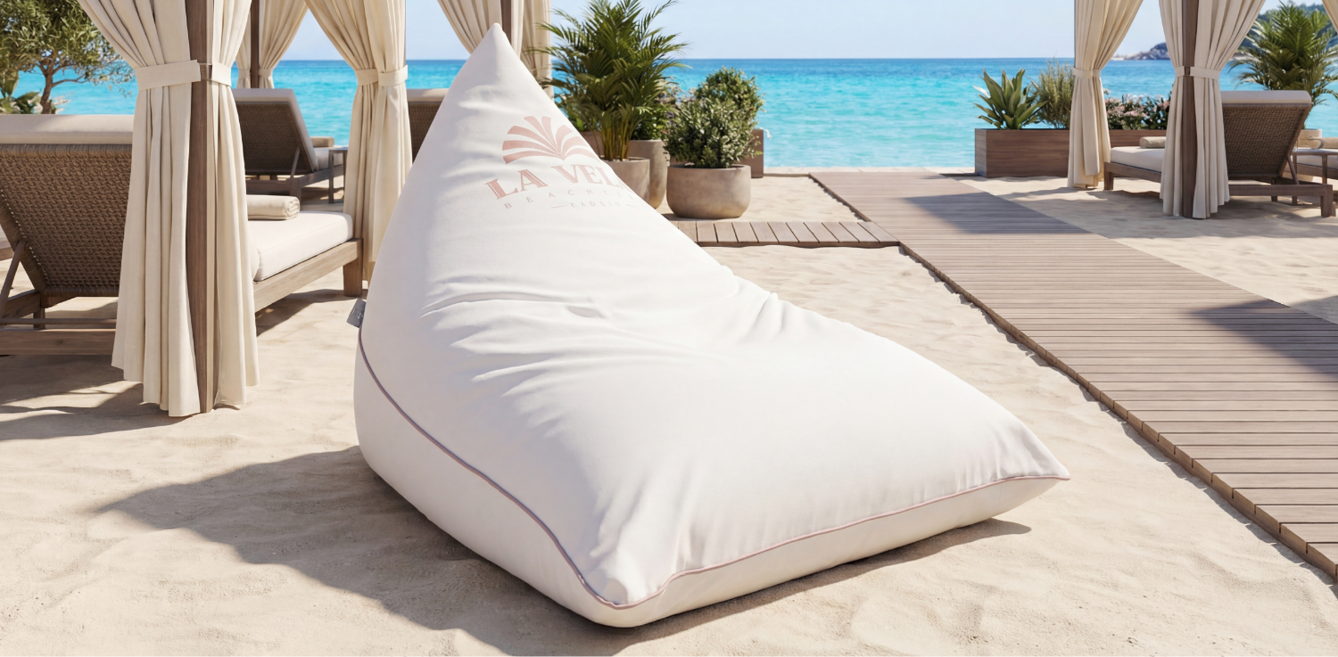 Iris è leggero, comodo e progettato per adattarsi perfettamente a contesti come spiagge, chioschi e aree relax. Non è il solito pouf: è sfoderabile e resistente a sole, sabbia e pioggia, quindi perfetto per affrontare tutta la stagione estiva senza compromessi.
